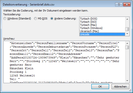Serienbrief erzeugen.alternativ:
