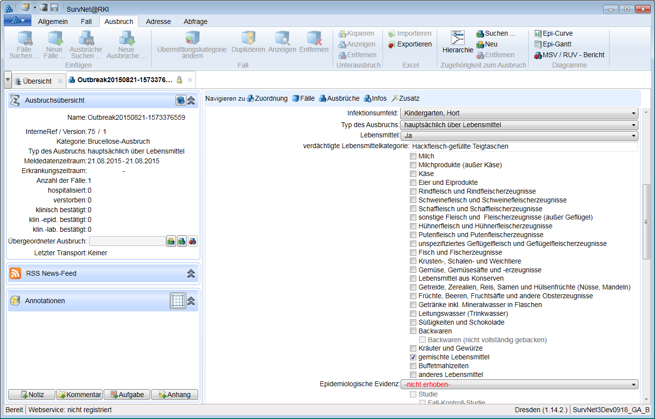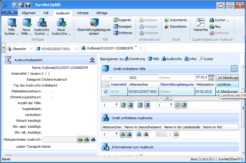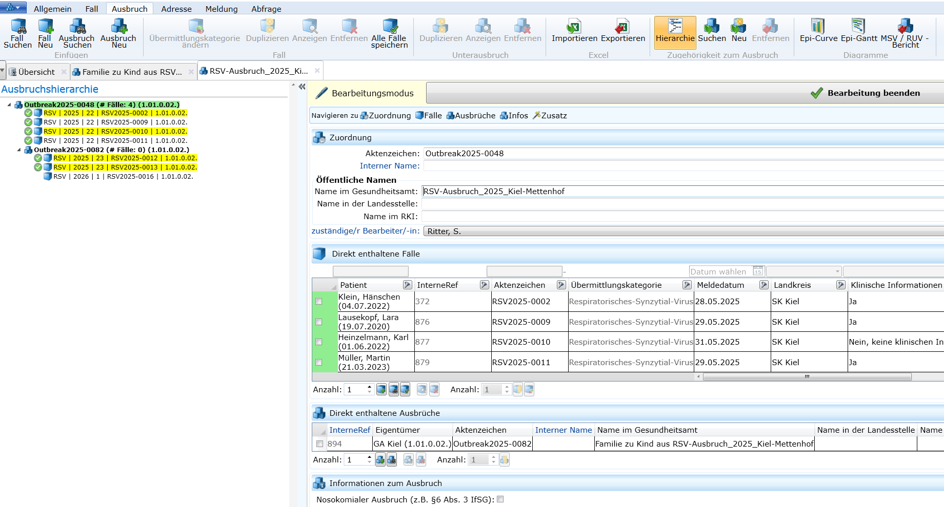 Sie hatten einen Ausbruch angelegt, gespeichert und übermittelt. Der epidemiologische Zusammenhang der Fälle stellt sich im Laufe weiterer Recherchen als nicht mehr gegeben heraus.