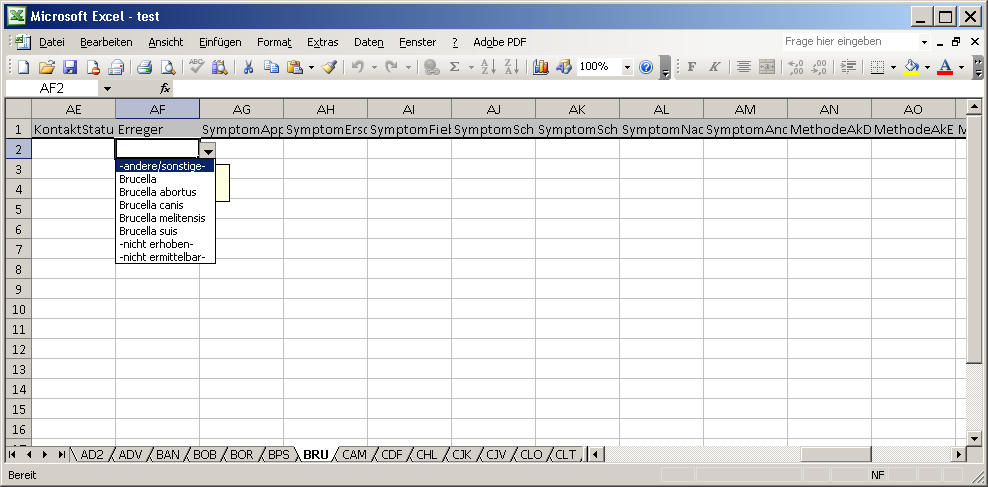 Mit dem folgenden Beispiel sollen Felder, die zur Beschreibung eines lebensmittelbedingten Ausbruchs unter
