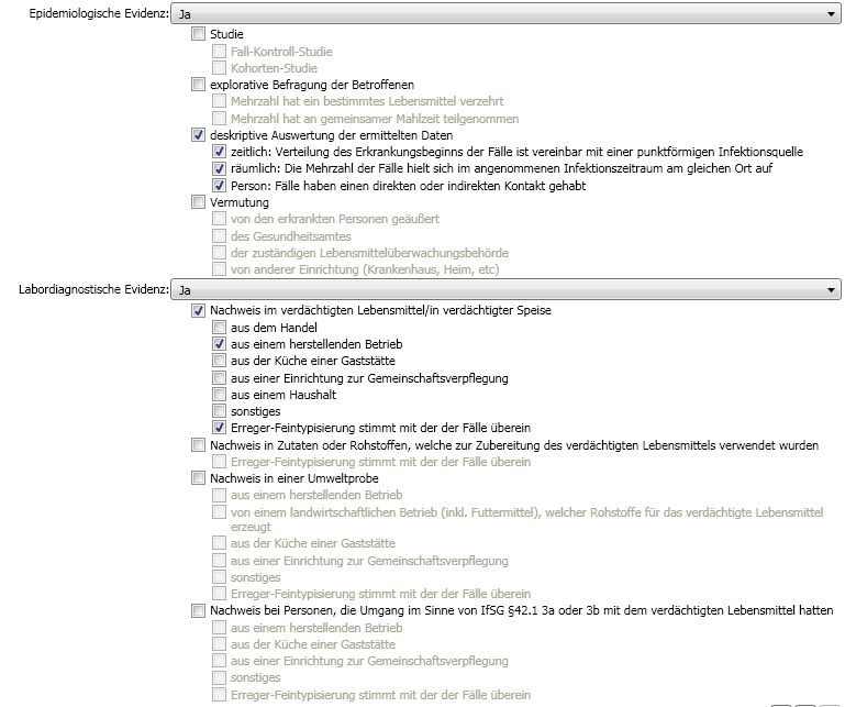 Es gibt qualitativ verschiedene Arten von Anhaltspunkten und Indizien, die sog. Evidenz, die auf die Ursache eines Ausbruchs hinweisen. Zur Bewertung der Ausbruchsangaben soll daher zusätzlich die zu Grunde liegende Evidenz erfasst werden. Vereinfachend ausgedrückt soll mit der Evidenz angegeben werden, aufgrund welcher Sachverhalte man in der abschließenden Bewertung des Infektionsgeschehens zu dem Schluss gelangt ist, wie der Ausbruch verursacht wurde. Unabhängig von der Art der Evidenz werden alle Ausbrüche von den Gesundheitsämtern erfasst und übermittelt.