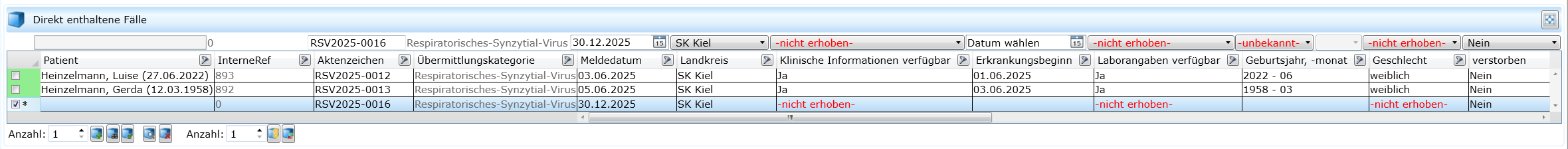 - Bei einem überregionalen Ausbrch sollten in allen Gesundheitsämtern der gleiche Name bei Name im Gesundheitsamt vergeben werden